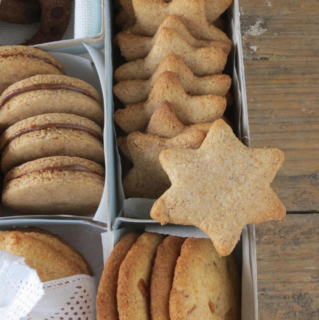 Ritagliate con un cutter i biscotti, disponeteli sulla banda del forno foderata con l’apposita carta. Cuocete a 180 gradi, forno statico, preriscaldato, per circa 20 minuti. Fate raffreddare completamente.