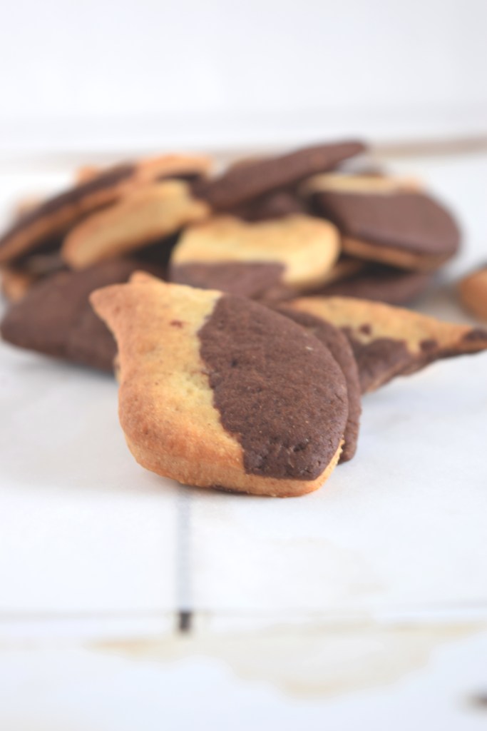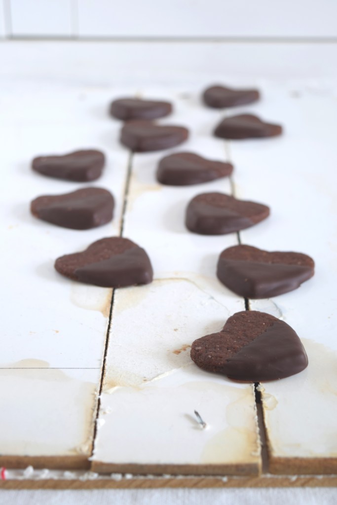 Sciogliete il cioccolato a bagno maria ed intingeteci i biscotti per metà. Adagiateli su un foglio di carta da forno, fate indurire in frigorifero. Dopo 1 ora i biscotti saranno pronti per l’assaggio!