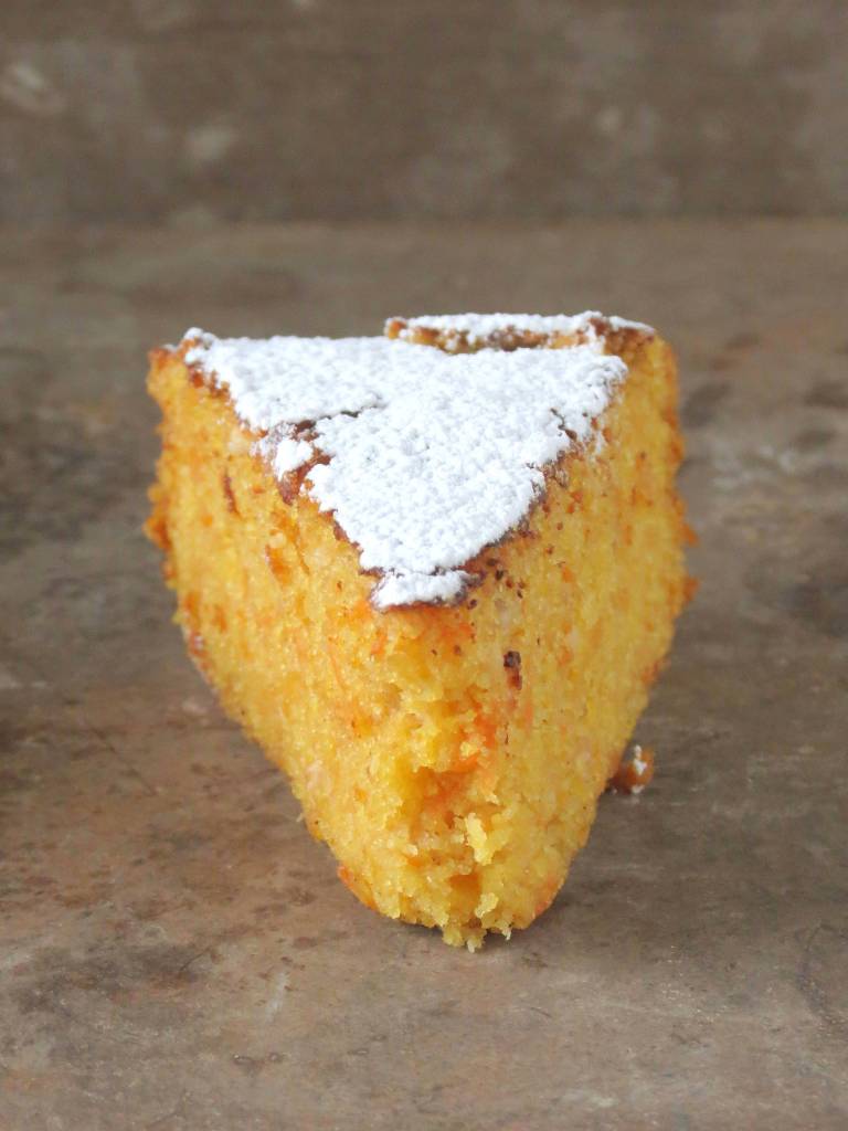 Frullate le carote sbucciate con olio e mandorle. Aggiungete zucchero, sale, vanillina, buccia di limone e arancia. Unite anche farina e lievito. Aggiustate la consistenza con il latte vegetale. L’impasto deve essere cremoso, non liquido o troppo secco.