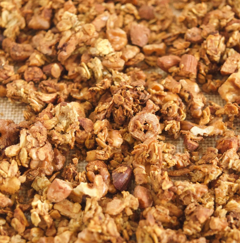 Come sostituire zucchero e miele in una granola? Con la purea di mele! Questa versione delicatamente dolce è perfetta per una colazione a ridotto contenuto di zuccheri.